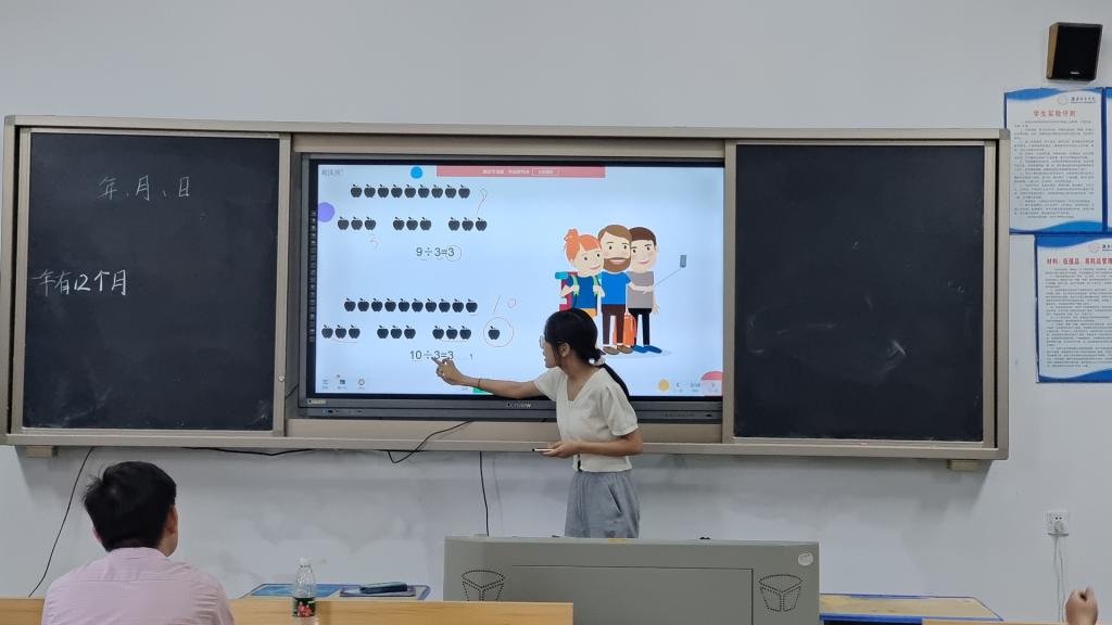 教学创新,亮点纷呈。 在比赛中,选手们不仅展示了扎实的数学基础和教学技能,更在教学创新上下了不少功夫。有的选手将数学与实际生活紧密结合,通过生活中的案例让学生感受到数学的实用性和趣味性;有的选手则注重培养学生的数学思维能力和解决问题的能力,让学生在探究和实践中提升数学素养。学生们通过从真实的生活案例出发,模拟真实场景,如神舟十八号火箭的发射,中华人民共和国国旗的引入求长方形的周长,从对团圆的定义让学生理解圆的性质,从《我和我的祖国》电影票的购买引入对集合的讨论,从中秋团圆分月饼引入分数的认识,植树造林保护环境等,让授课对象在实践中感受到数学的魅力和对爱国主义的传播。